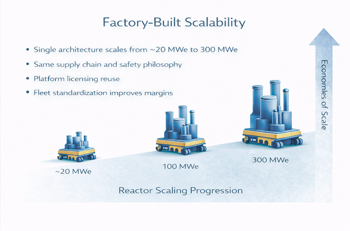 Modular nuclear reactors engineered for fast deployment. Designed by experienced nuclear engineers to move from concept to site faster than traditional SMRs.